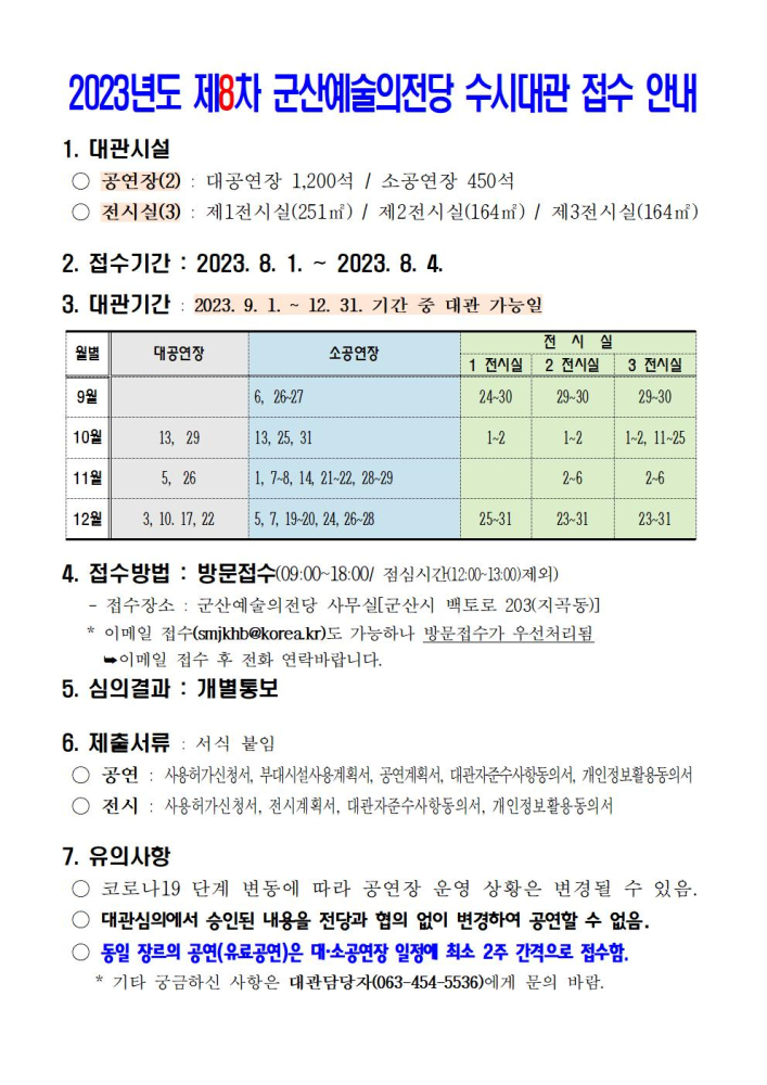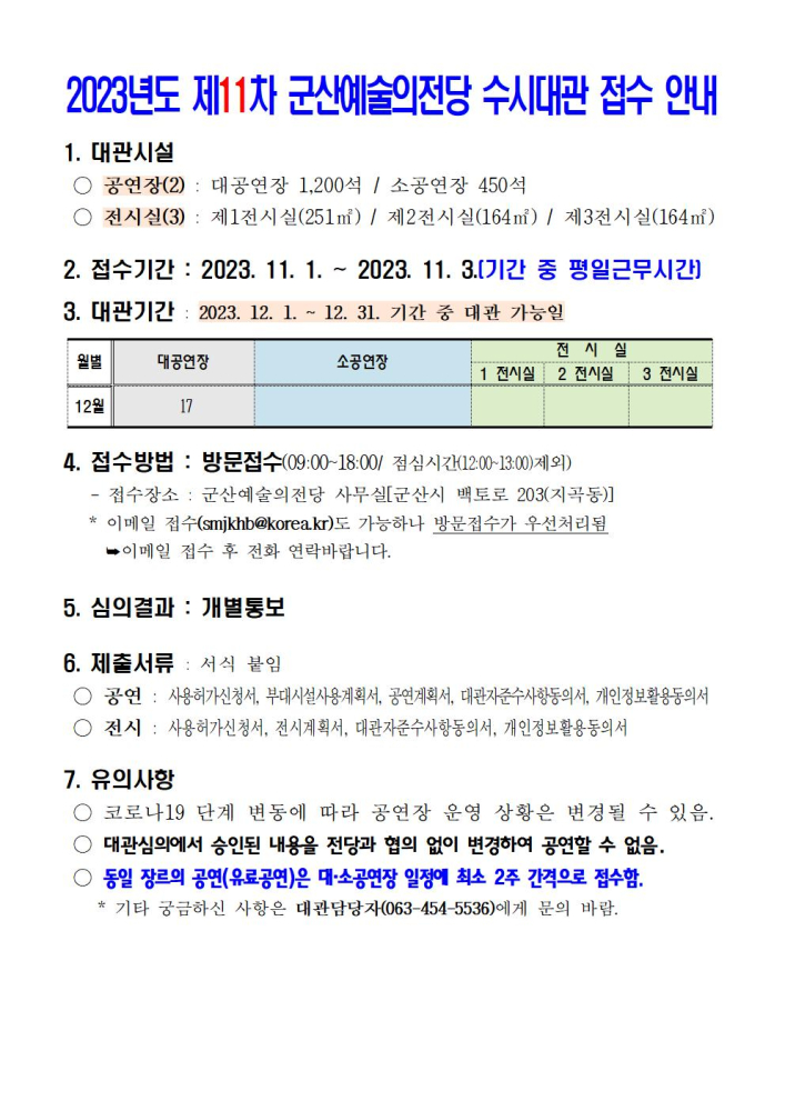 49 2023년도 군산 예술의전당 수시대관(11차) 접수 안내 다운받기 예술의전당관리과 23.10.30 784