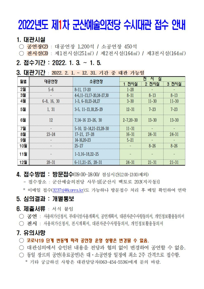 25 2022년도 군산예술의전당 수시대관(제1차) 접수 안내 다운받기 예술의전당관리과 21.12.30 1442