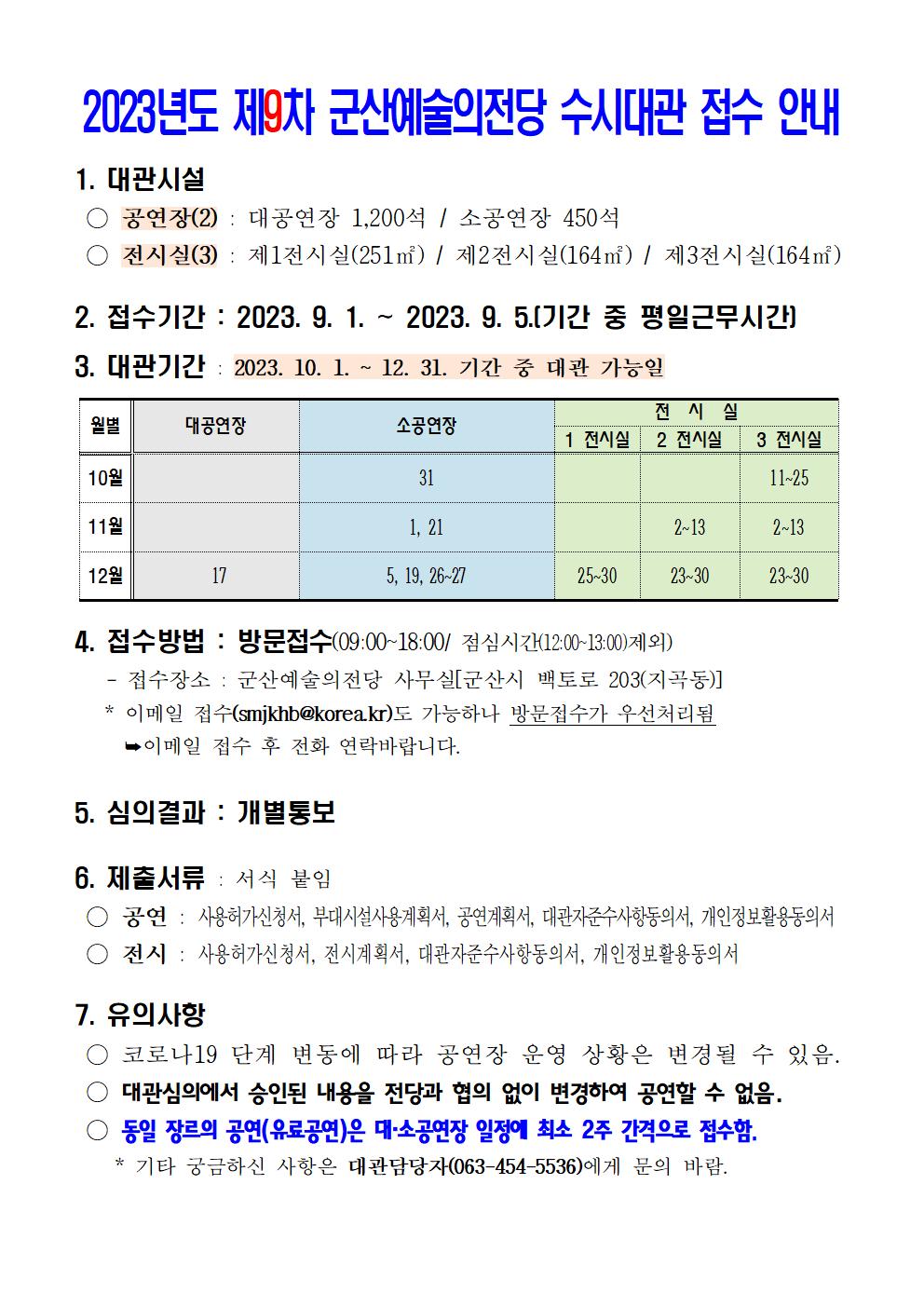 2023년도 군산예술의전당 수시대관(9차) 접수 안내