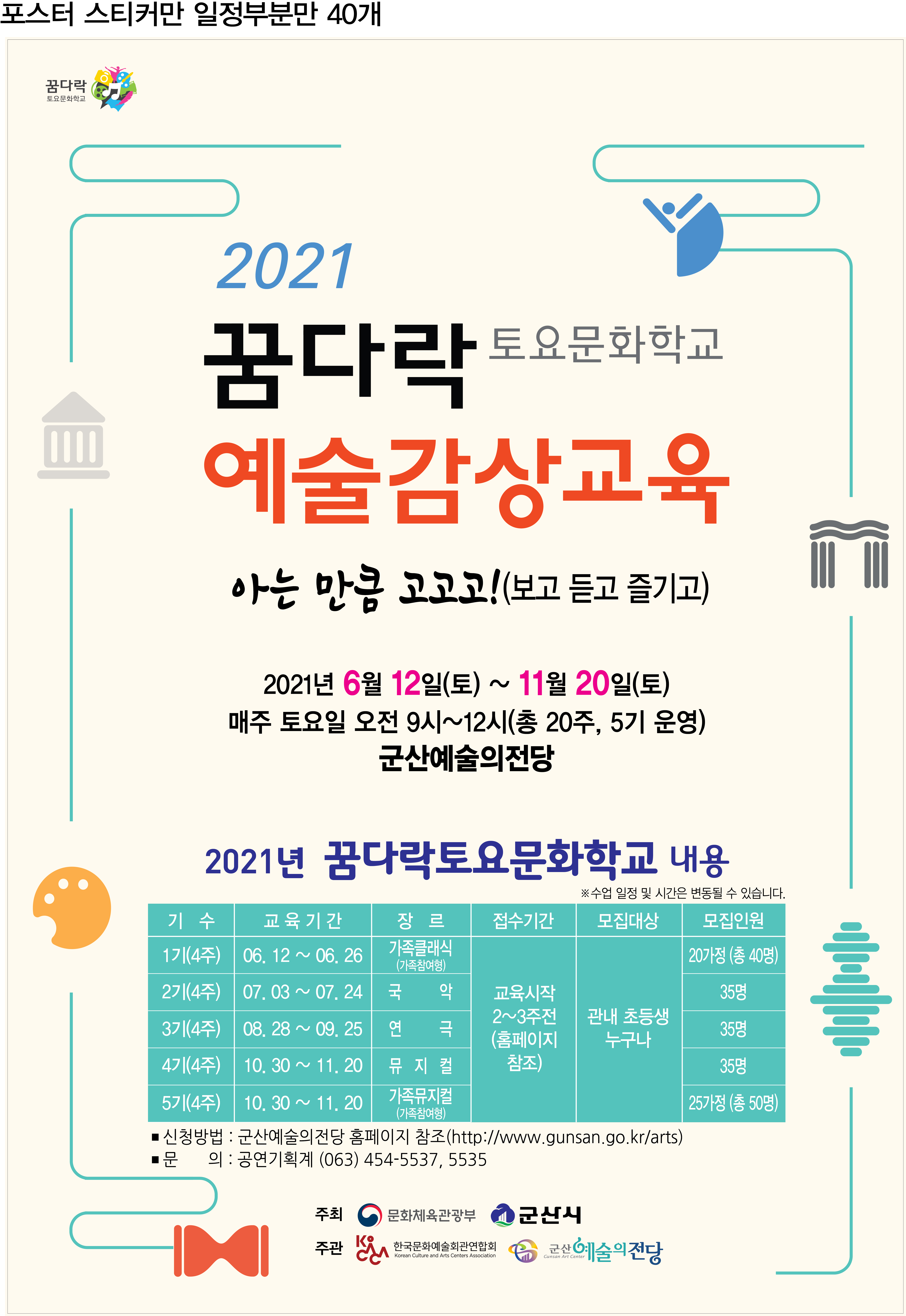 ◆교육일정 : 10월 30일, 11월 6일, 13일, 20일(공연관람)   * 4주차 공연 관람