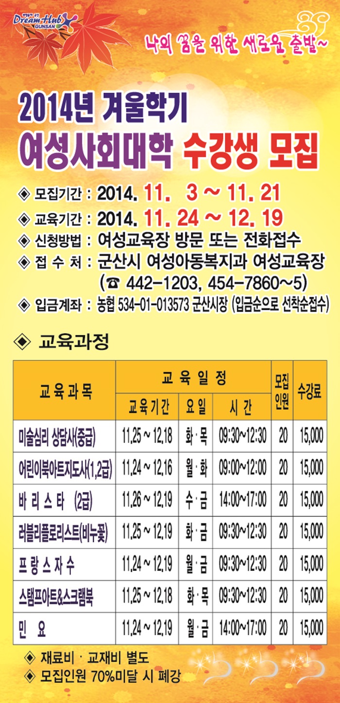 [안내]2014 겨울학기 여성사회대학 수강생 모집