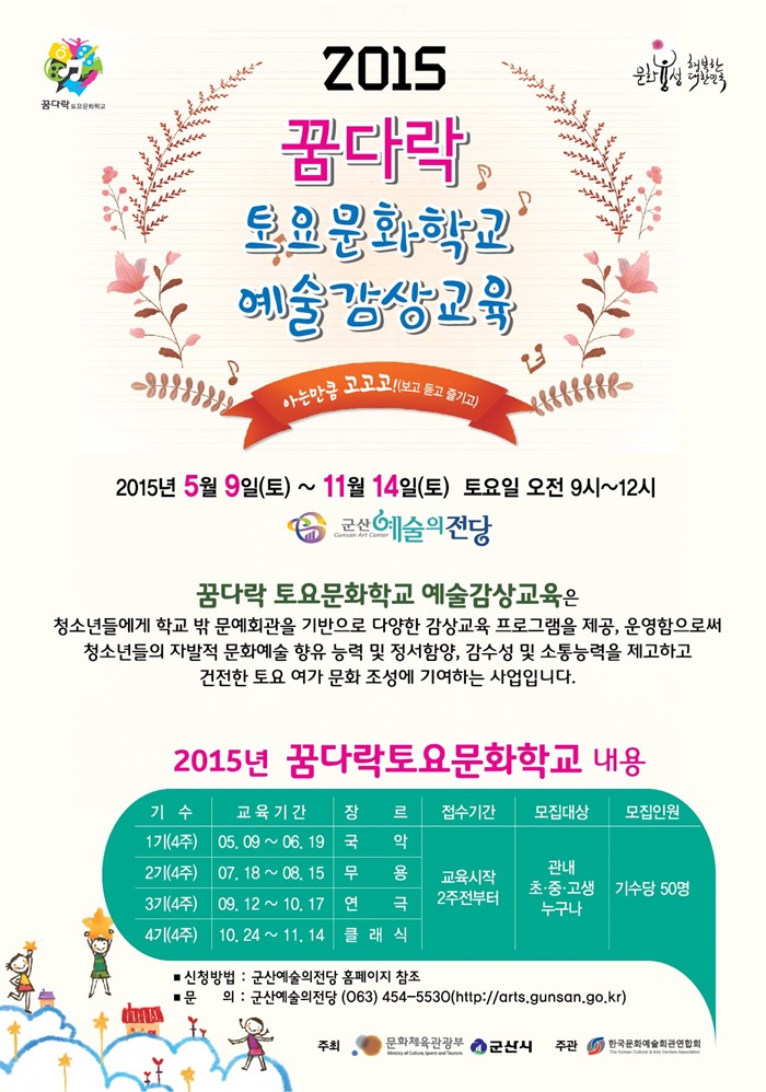 [모집] 2015 꿈다락 토요문화학교 예술감상교육 2기