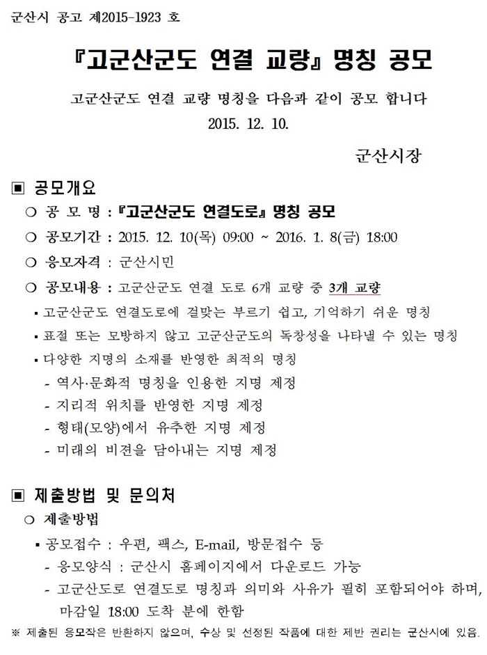 [알림]<고군산군도 연결교량> 명칭공모