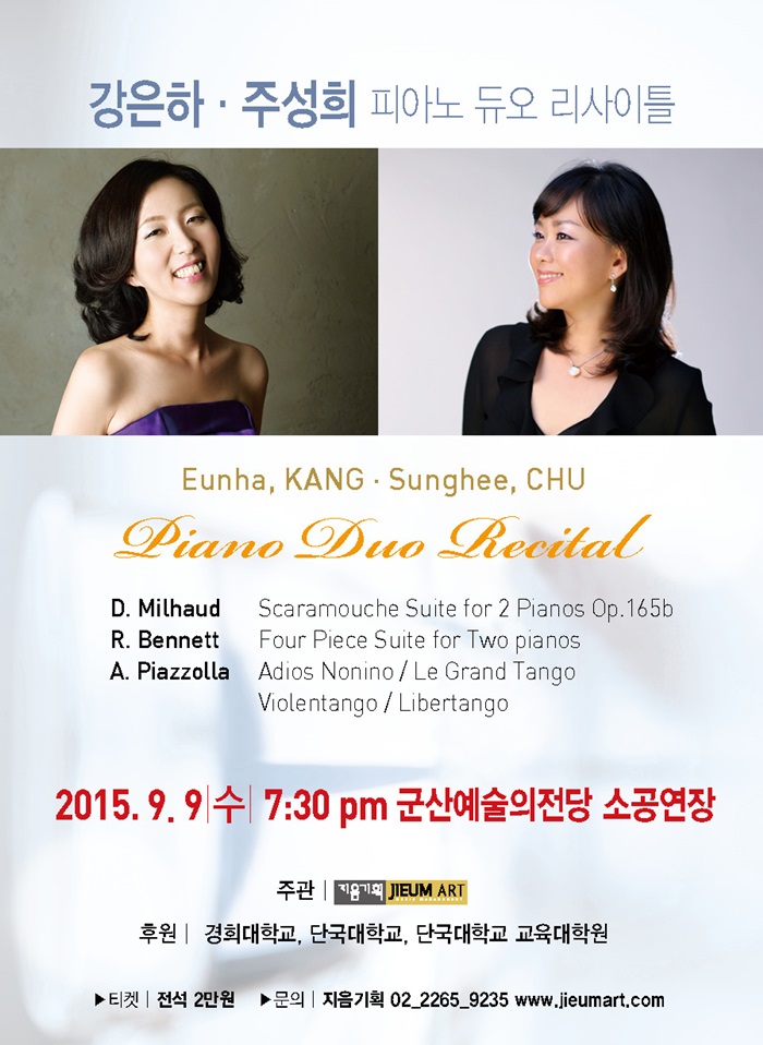 112 [대관공연안내] 9월 9일 소공연장 19:30 -강은하 주성희 피아노 듀오 리사이틀 다운받기 예술의 전당 15.08.20 1711