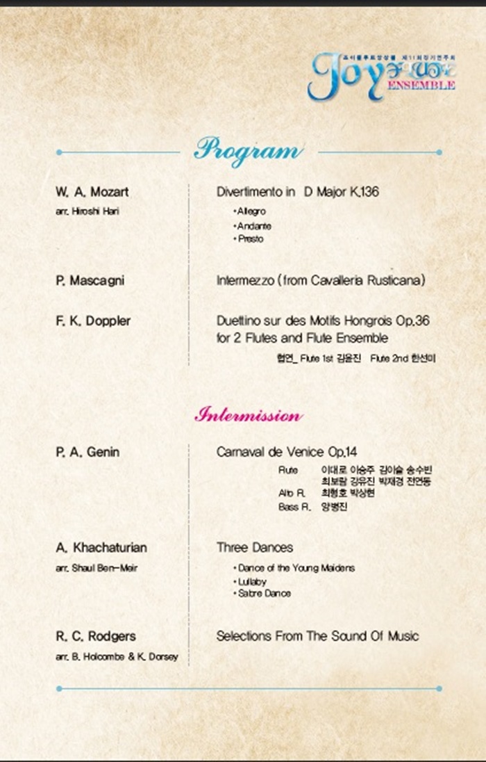 [대관공연안내] 8월 22일 대공연장 19:00 - 조이플루트 앙상블 정기연주회