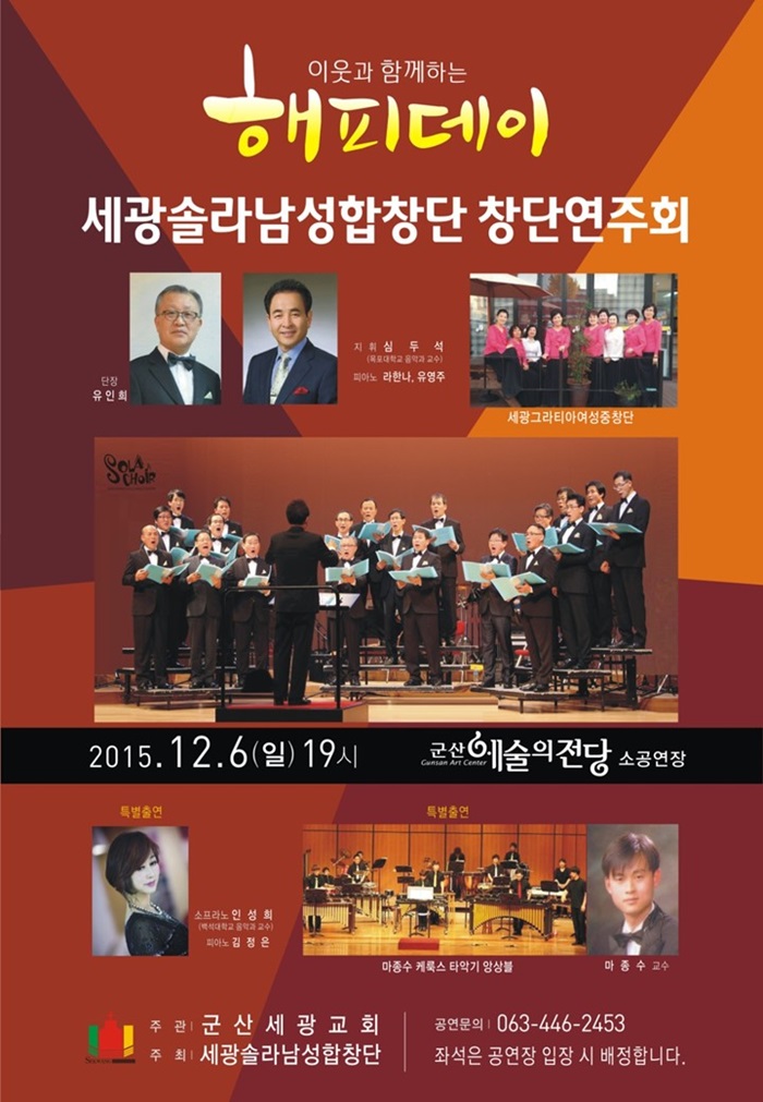 [대관공연안내] 12월 6일(일) 소공연장 19:00 - 세광솔라남성합창단 창단연주회