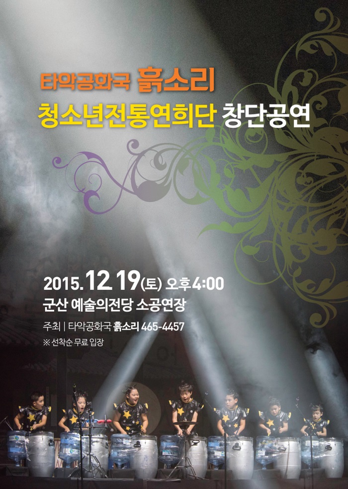 [대관공연안내] 12월 19일 16:00 소공연장-타악공화국 흙소리 청소년전통연희단 창단공연