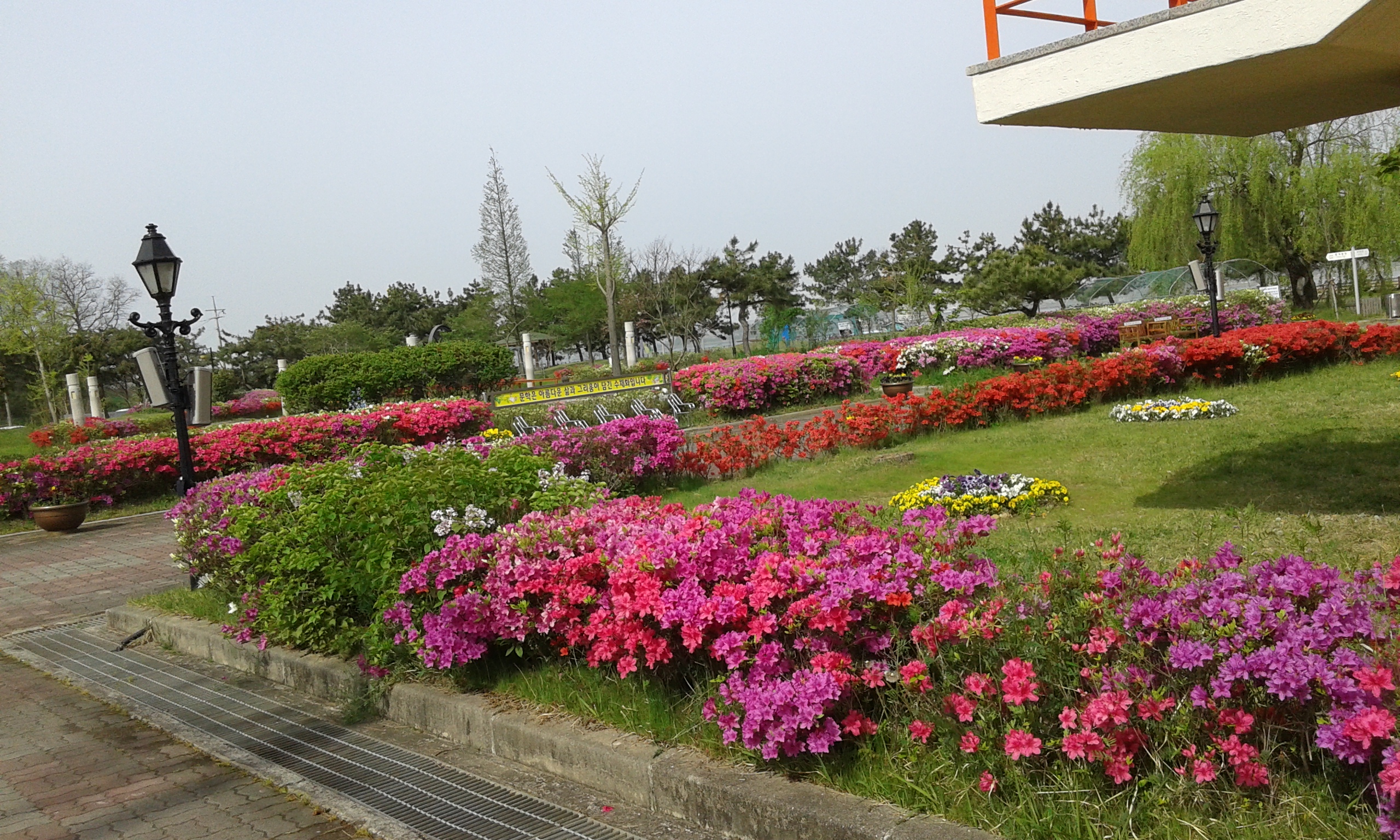 엊그제 벚꽃잎이 흰눈처럼 날리더니 뒤를 이어 붉은 철쭉꽃이 자태를 뽐내며