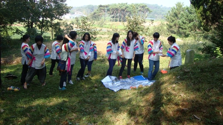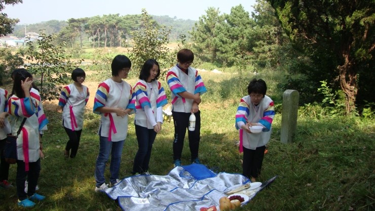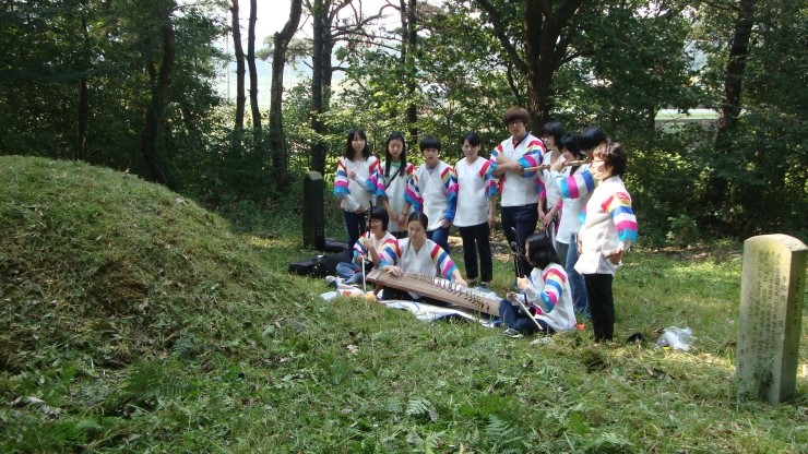 성묘를 하고, 아리랑 회원들이 가지고 온 가야금, 해금, 대금으로 연주를 했다.