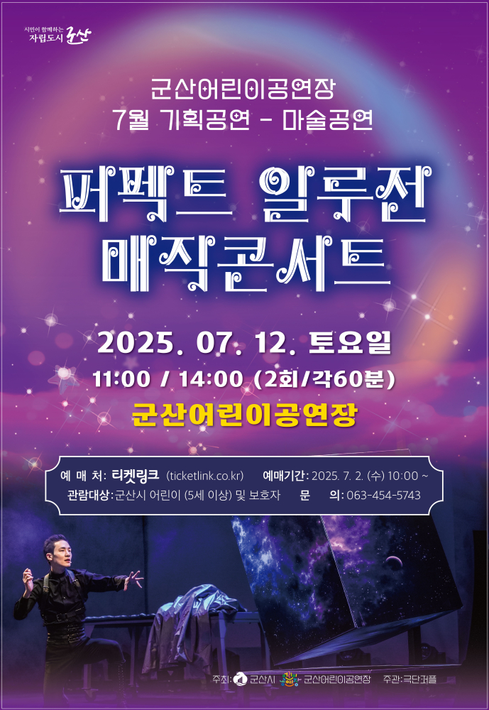 112 군산어린이공연장 7월 기획공연 '퍼펙트 일루전 매직콘서트' 안내 다운받기 예술의전당관리과 25.06.18 353