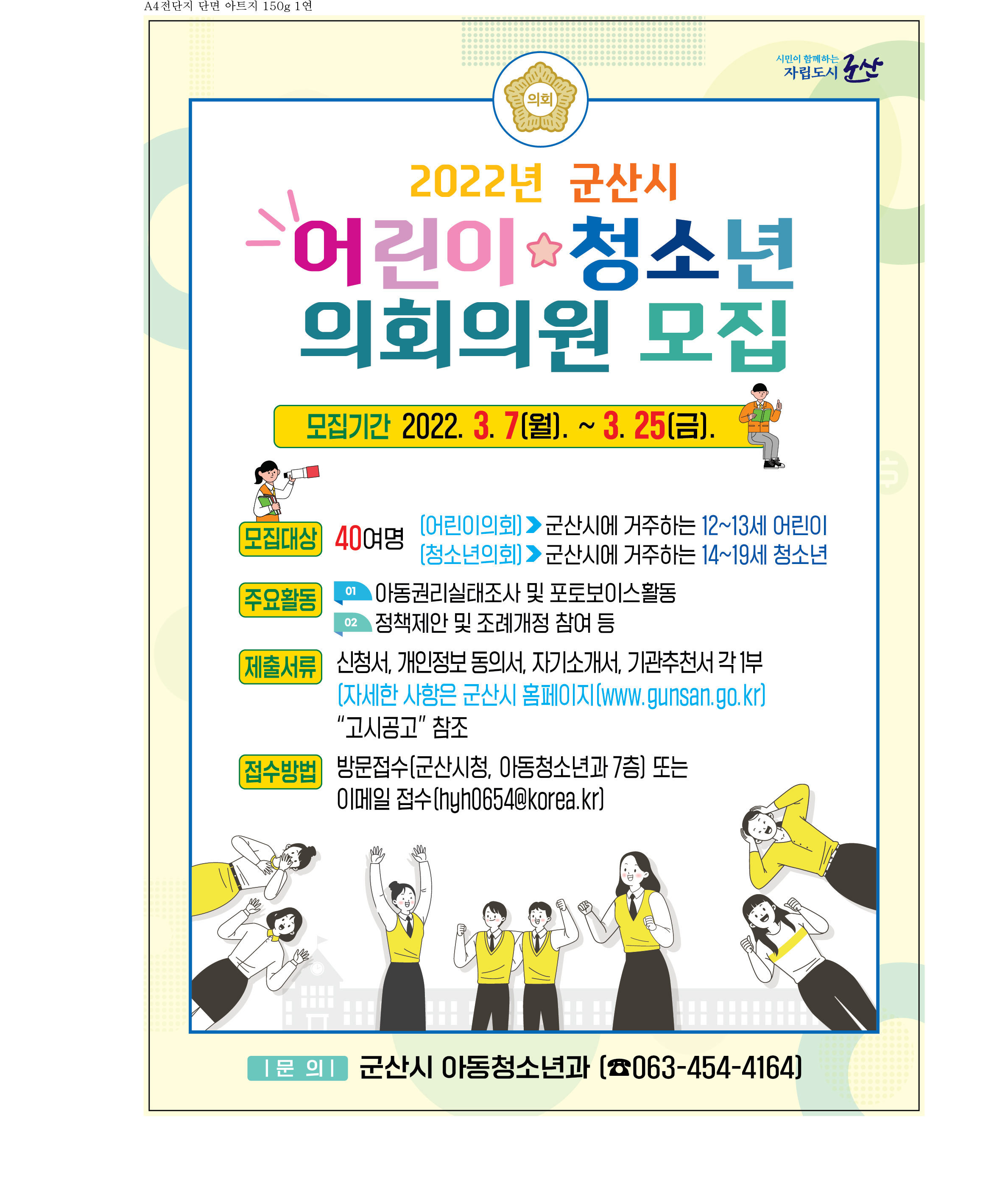 2022년 군산시 제7기 어린이‧청소년의회 의원 모집