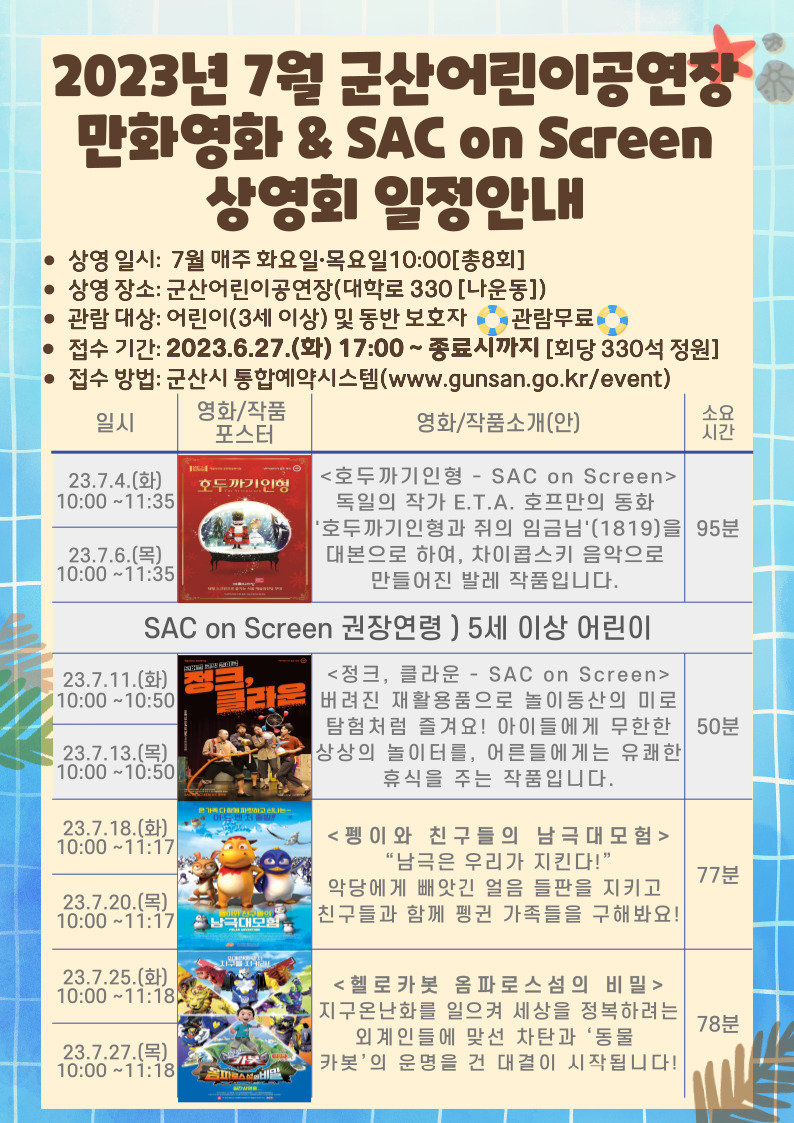 2023년 7월 어린이공연장 만화영화 & SAC on Screen 상영안내