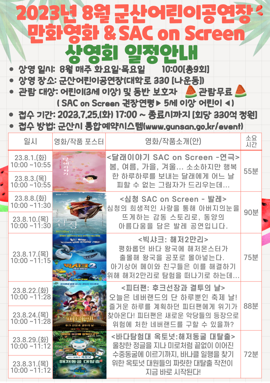 2023년 8월 군산어린이공연장 만화영화 & SAC on Screen 상영회 일정 안내