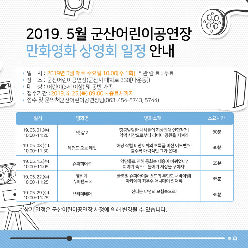 2019. 5월 군산어린이공연장 만화영화 상영회 일정 안내