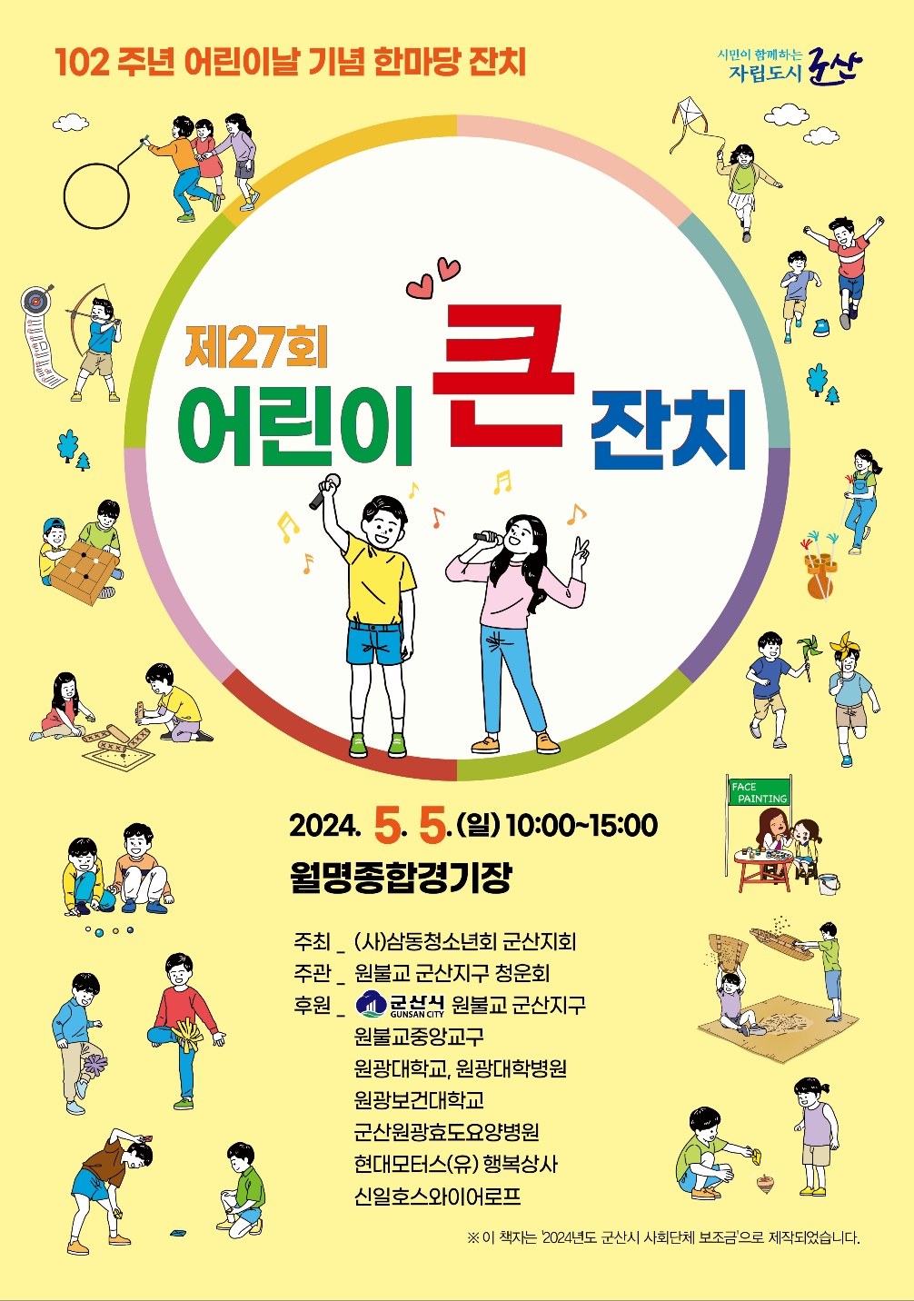 2024년 제102회 어린이날 행사가 다음과 같이 개최되오니 많은 어린이와 가족이 참여하여 즐거운 시간을 보내시기 바랍니다.
