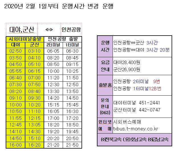 | 7581 | 군산-인천공항, 대야-인천공항 운행시간이 2월 1일부터 변경운행합니다. |
