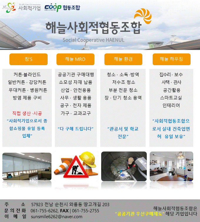 | 7584 | 해늘사회적협동조합 - 전남 순천 사회적기업 / 사회적 협동조합입니다^^ |