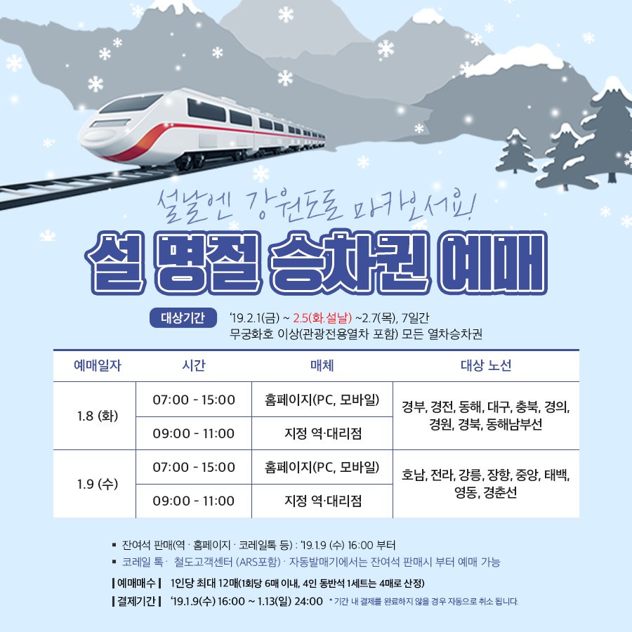 7413 2019년도 설 열차예매 소식 및 기간 다운받기 *** 19.01.08 3232