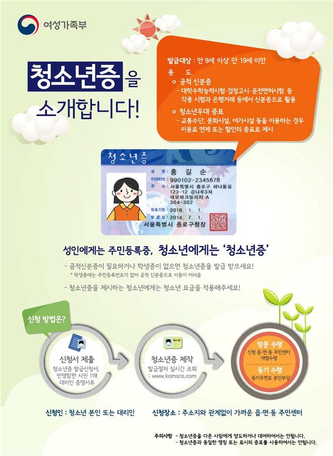 | 6843 | 대한민국 청소년여러분 청소년증을 발급하세요 |