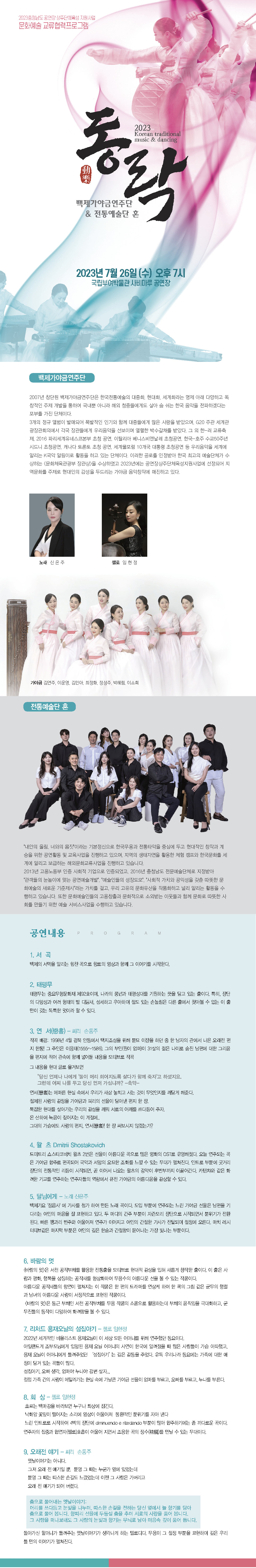🎟️ 관람방법 : 누리집 사전 예약 후 공연 당일 본인 확인 후 입장(무료 관람)