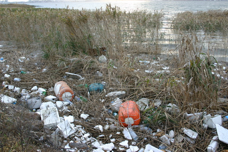 첨부한 사진과 같이 금강하구언 부근의 갈대밭에 오물이 가득합니다.