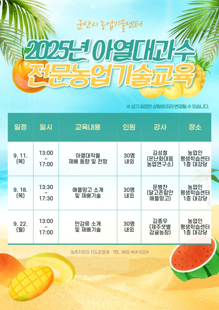 1036 2025년 전문농업기술교육 아열대과수 교육 추진 알림 다운받기 농촌지원과 25.09.04 429