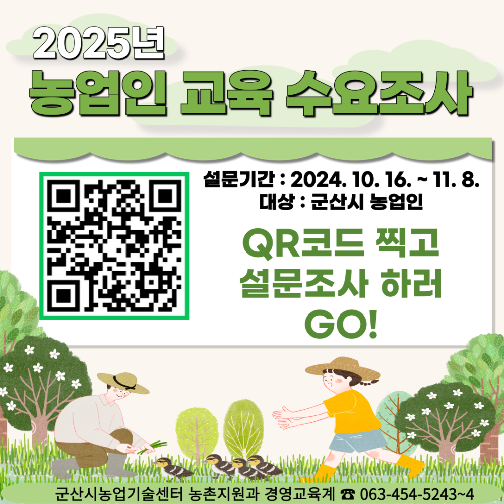 887 2025년도 농업인 교육 수요 설문조사 안내 다운받기 농촌지원과 24.10.16 883