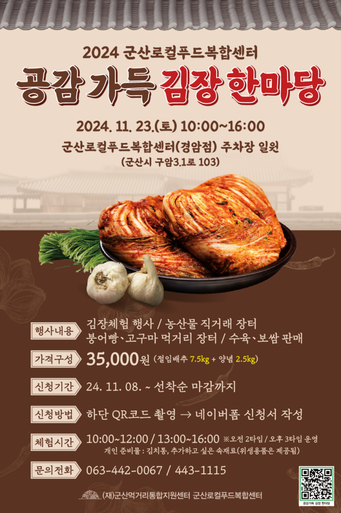 894 2024년 군산로컬푸드복합센터 공감 가득 김장 한마당 안내 다운받기 먹거리정책과 24.11.13 559