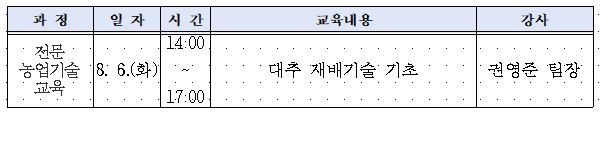 865 2024년 전문농업기술교육 (대추 재배기술) 교육 알림 (2024. 8. 6. (화요일)) 다운받기 농촌지원과 24.07.30 545