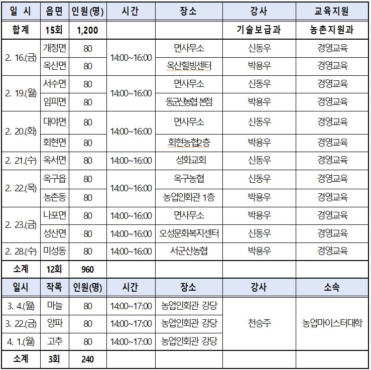 779 2024년 새해농업인 실용교육 일정 안내 다운받기 농촌지원과 24.02.08 1437