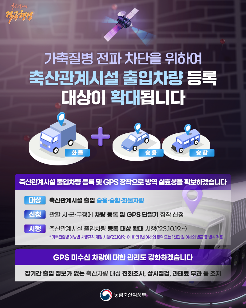 726 축산관계시설 출입차량 등록대상 확대시행 안내 다운받기 농업축산과 23.10.10 350