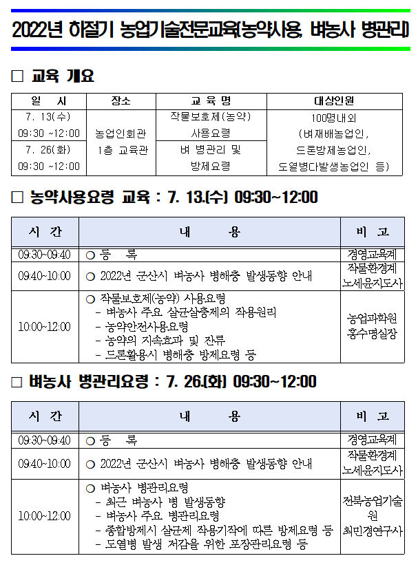 | 517 | 벼농사(농약사용, 병해충관리) 농업기술전문교육 실시 |