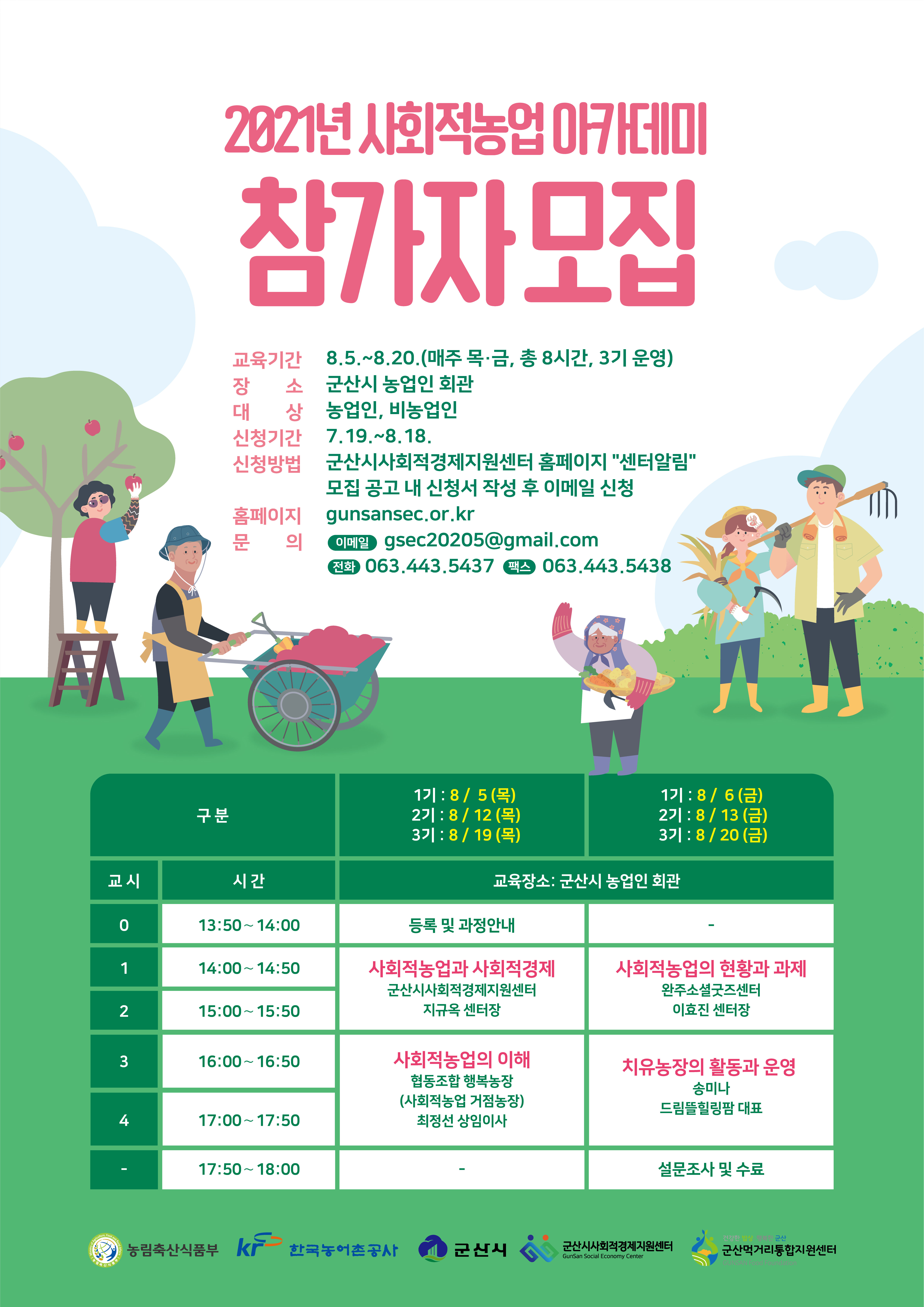 | 352 | 2021년 군산시 사회적농업 아카데미 참가자 모집(신청기간 연장) |