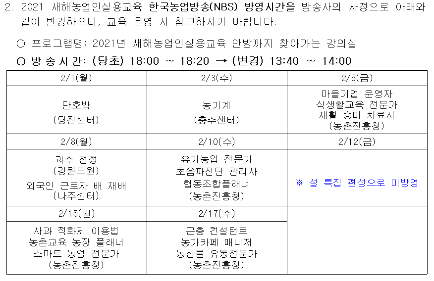 | 278 | 2021 새해농업인실용교육 - 케이블TV 방송 일정 |