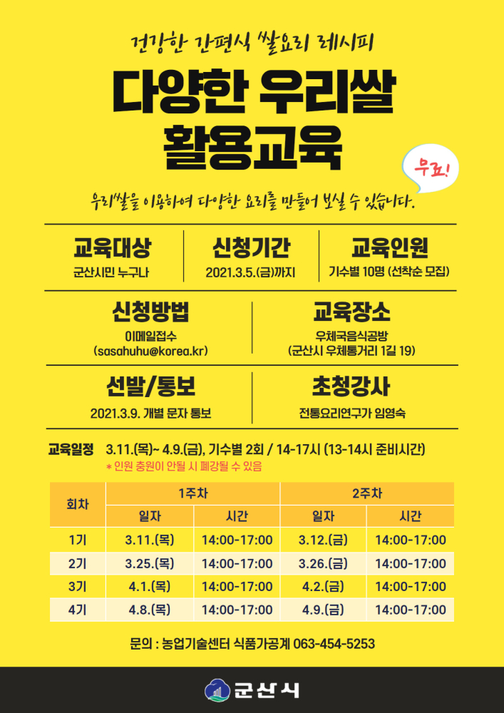 | 283 | 2021년 다양한 우리쌀 활용교육 신청자 모집(접수마감) |