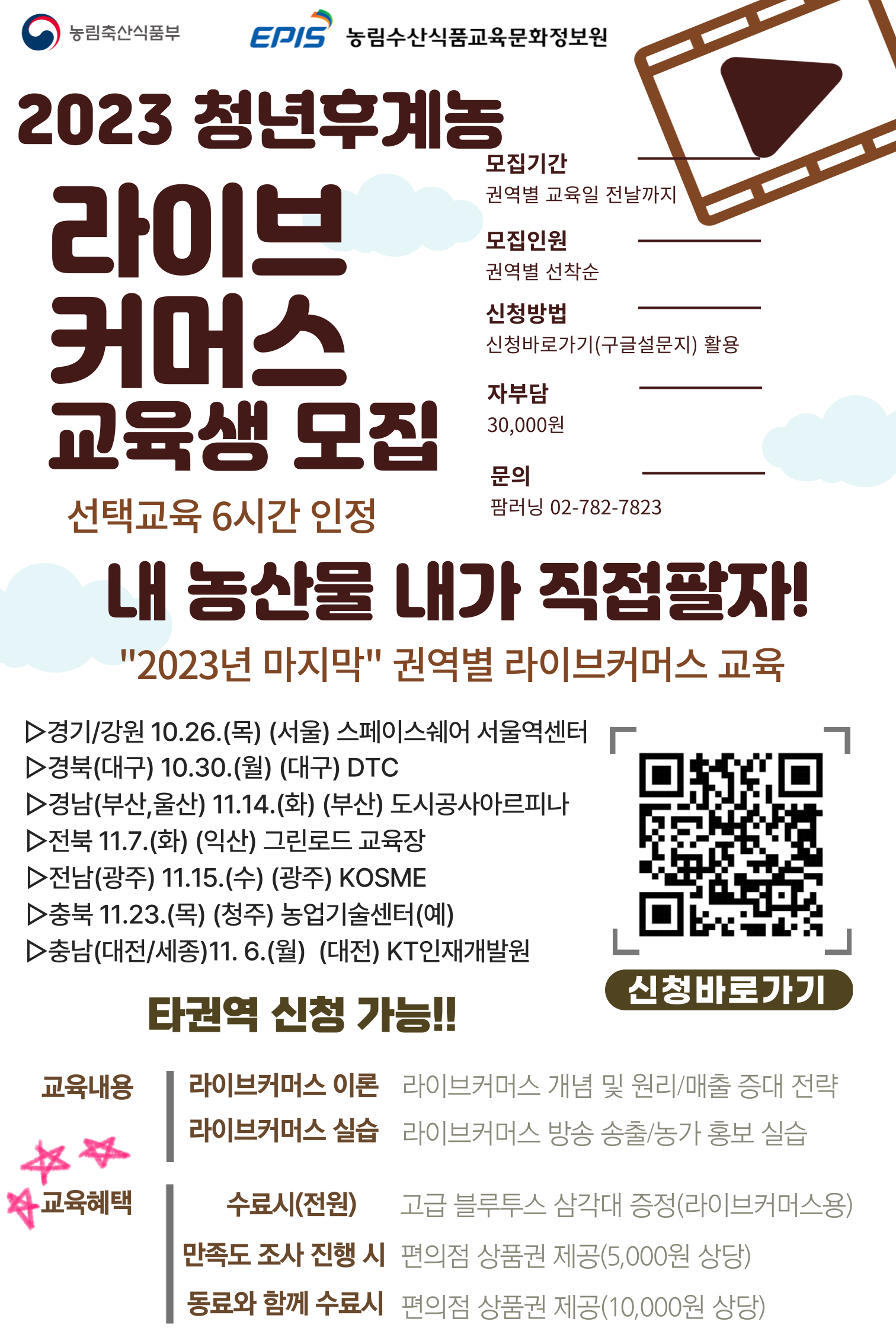 2023년 청년후계농 유통판로 역량강화 교육과정 개설 및 교육생 모집 알림