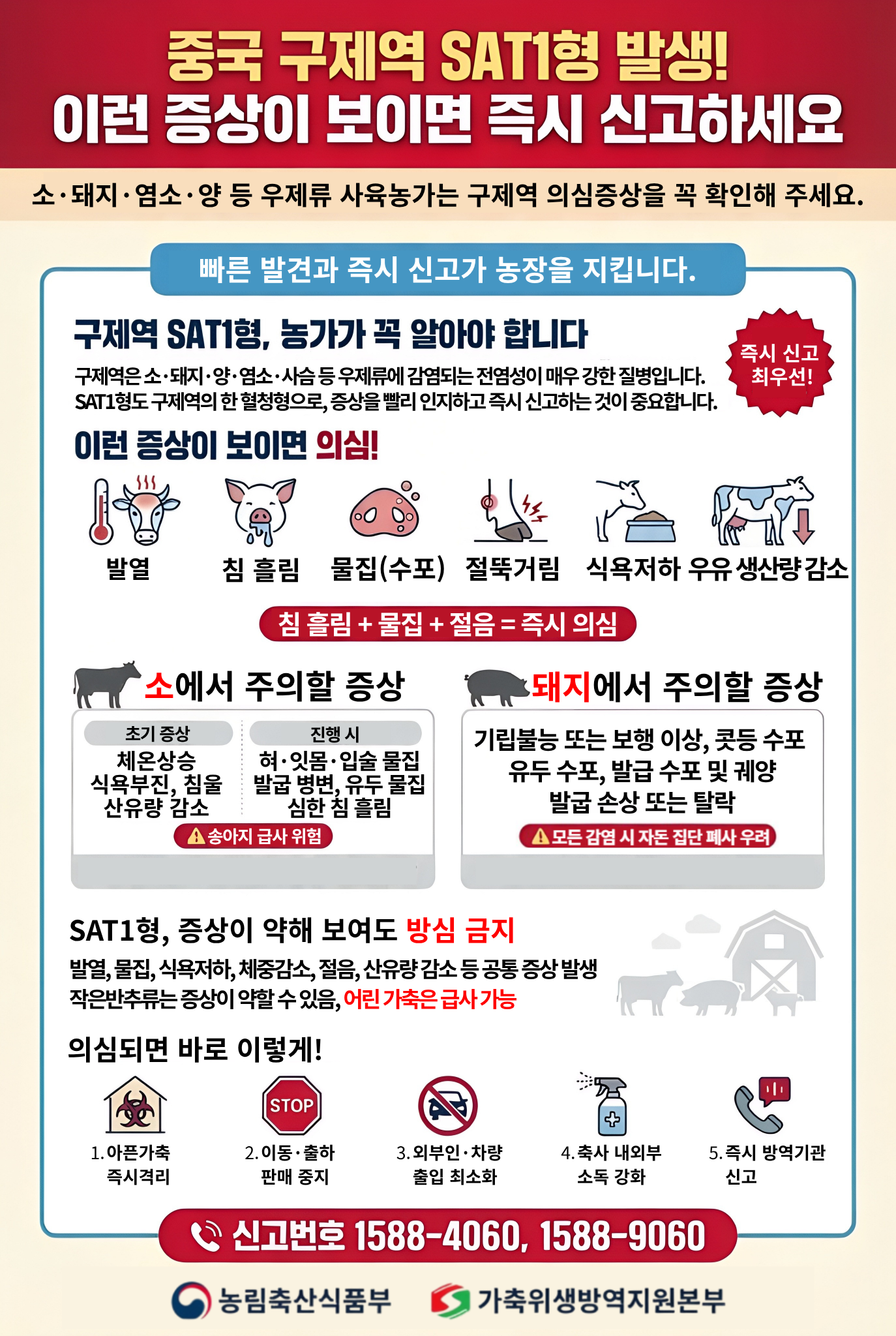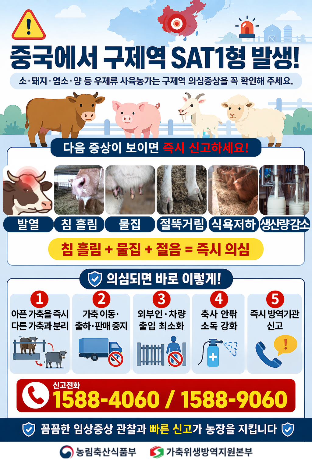 중국 구제역 발생(SAT1형) 에 따른 방역사항 알림