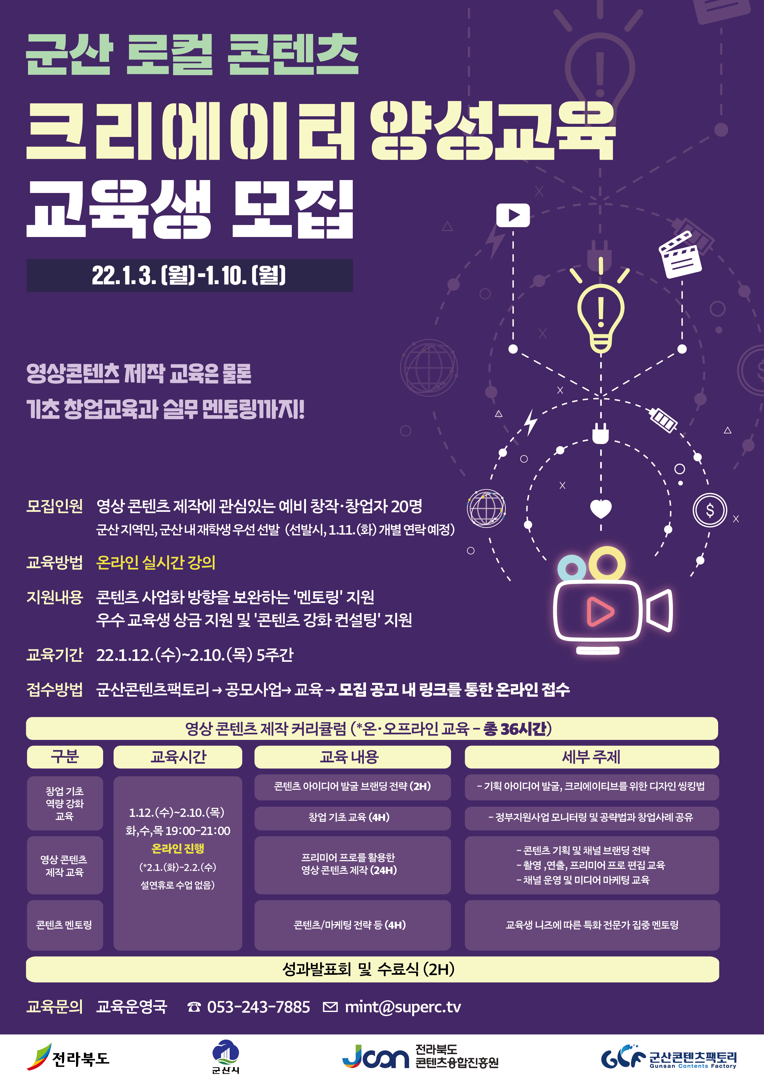 로컬 콘텐츠 크리에이터 양성교육 교육생을 모집합니다.