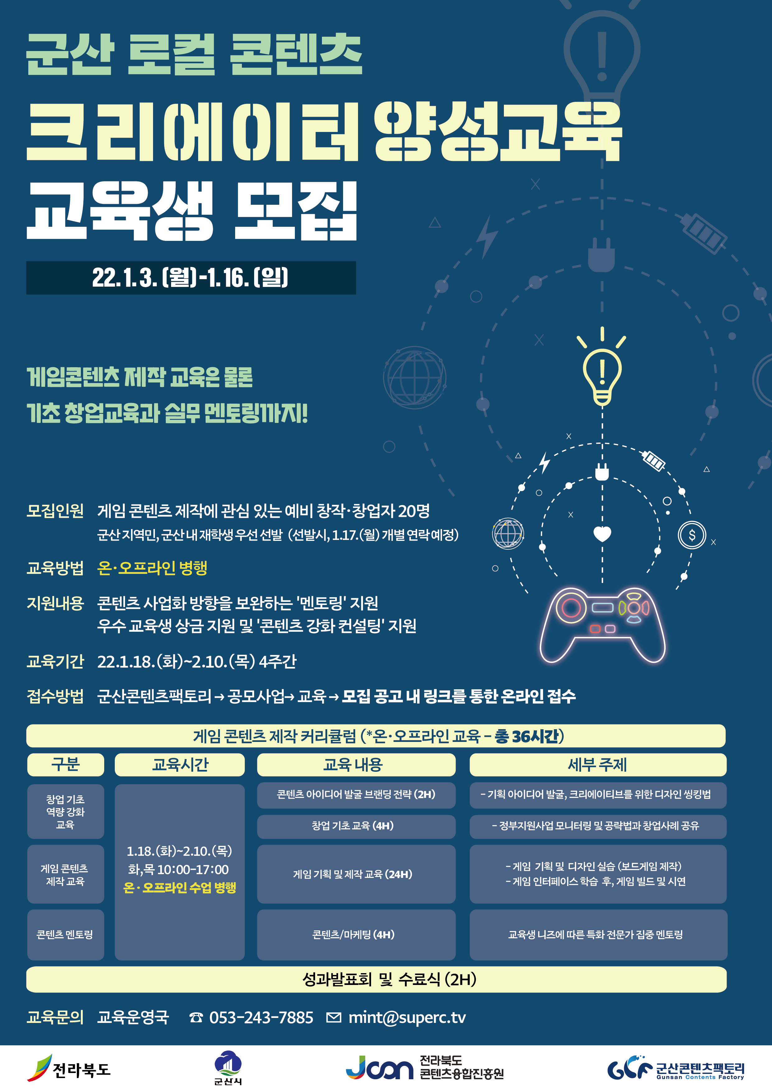 안녕하십니까 군산 콘텐츠팩토리입니다.