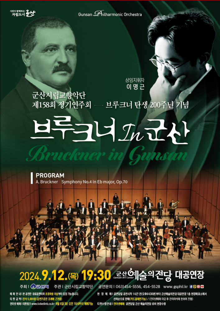 145 군산시립교향악단 제158회 정기연주회 [브루크너 in 군산] 공연 안내 다운받기 군산시립교향악단 24.08.05 670