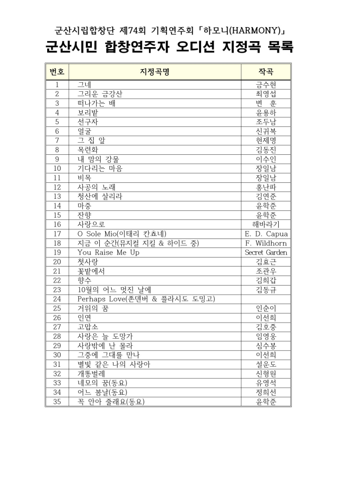 25 군산시민 합창연주자 오디션 악보 (31 -35번) 다운받기 군산시립합창단 23.08.17 781