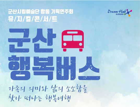 군산시립예술단(단장 한준수 부시장)1117()~18() 3회에 걸쳐 예술의 전당 대 공연장에서 뮤지컬 <군산 타임 버스>라는 주제로 시민 여러분과 함께 하고자 한다.