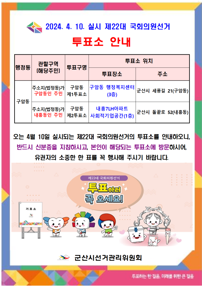 | 161 | 2024. 4. 10. 실시 제22대 국회의원 선거 투표소 안내(구암동) |