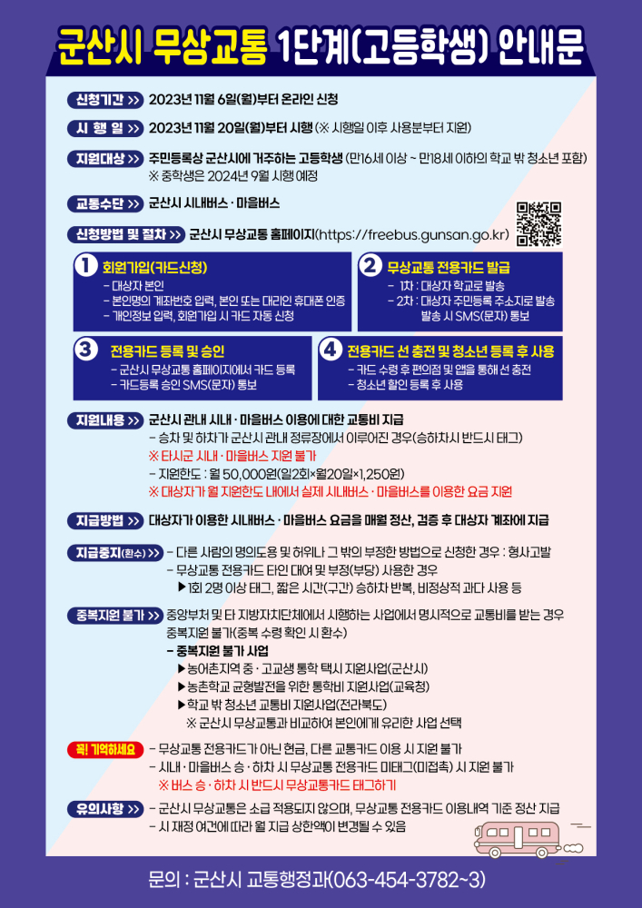 | 92 | 군산시 고등학생 무상교통 시행 알림 |