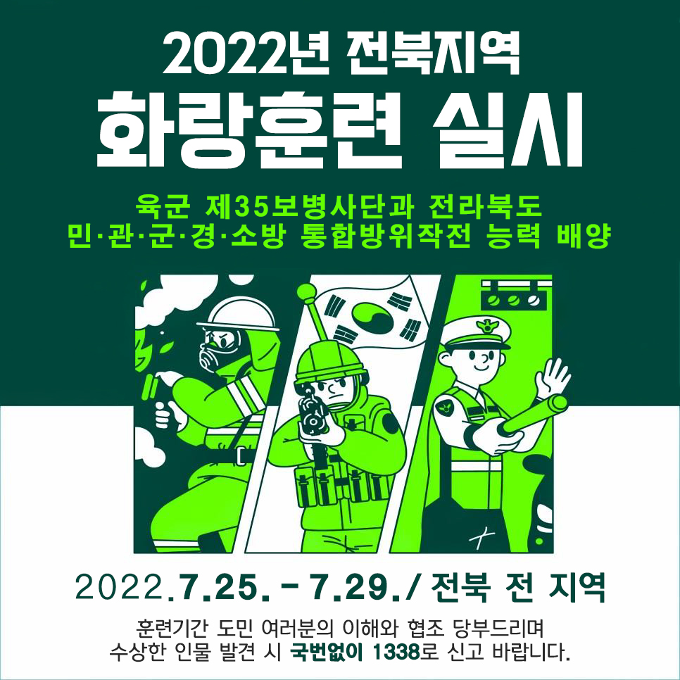 | 798 | 2022년 화랑훈련 실시 안내(2022. 7. 25. ~ 7. 29.) |