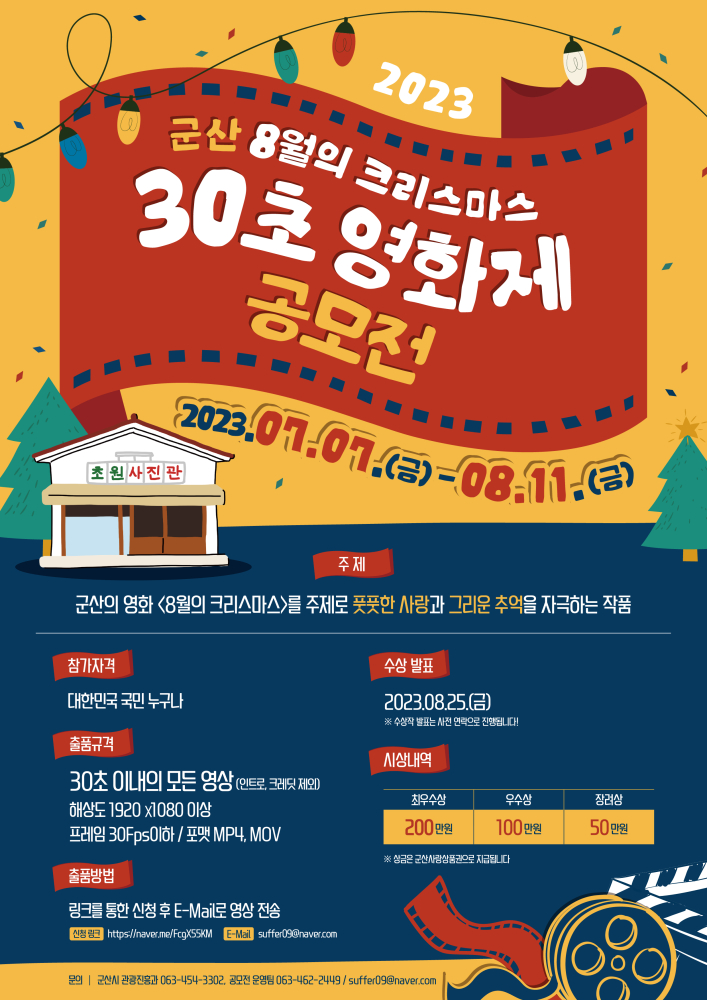 897 「군산 8월의 크리스마스 30초 영화제 공모전」개최 알림 다운받기 구암동 23.07.10 2279