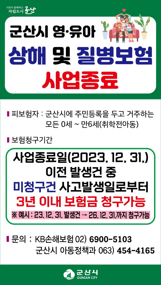 | 290 | 군산시 영유아 상해 및 질병보험 종료 안내 |