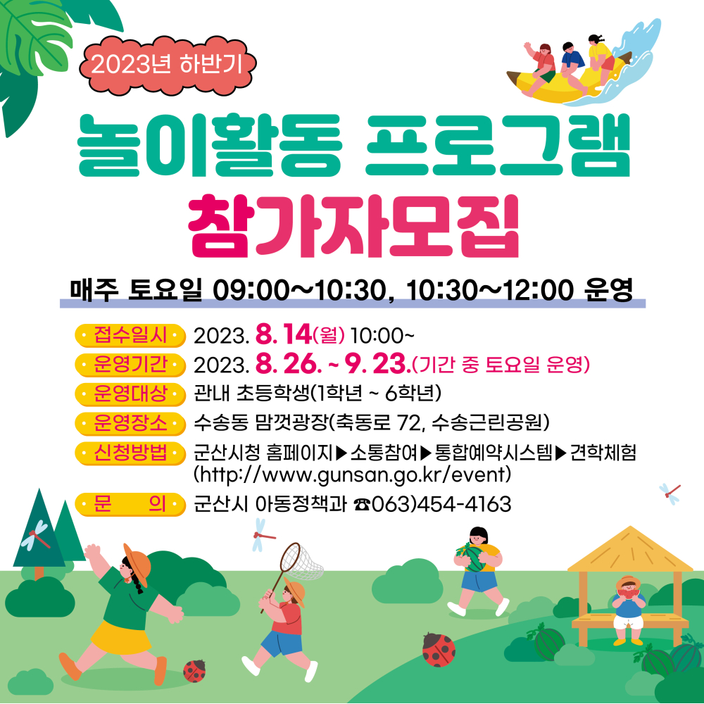| 234 | 2023년 하반기 어린이 놀이활동 프로그램 참가자 모집 |
