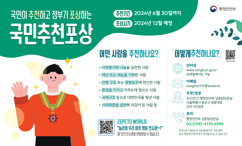 | 392 | 2024년 제14기 국민추천포상 안내 |