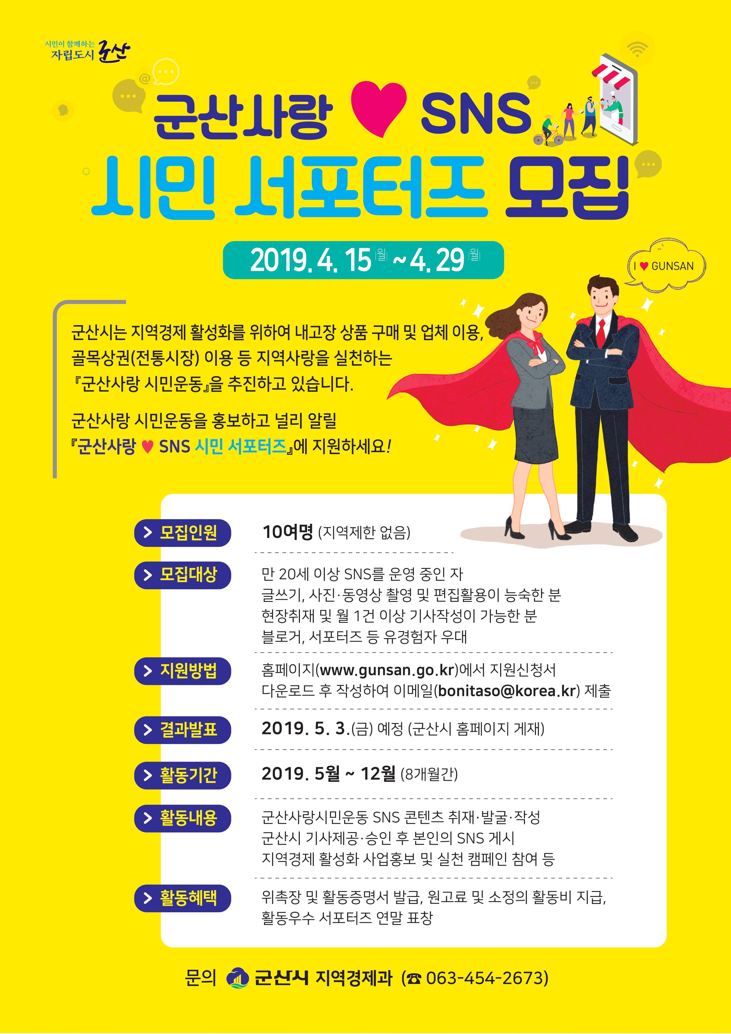 「군산사랑♥ SNS 시민 서포터즈」를 아래와 같이 모집합니다.